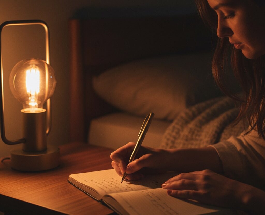 Keep your reflection window short — five to ten minutes — so the practice feels approachable rather than effortful. Calm Sleeply readers often find that reflection feels most soothing when done in low light, with warm tones and minimal sensory stimulation. This way, the environment guides the mind into calm while you reflect.