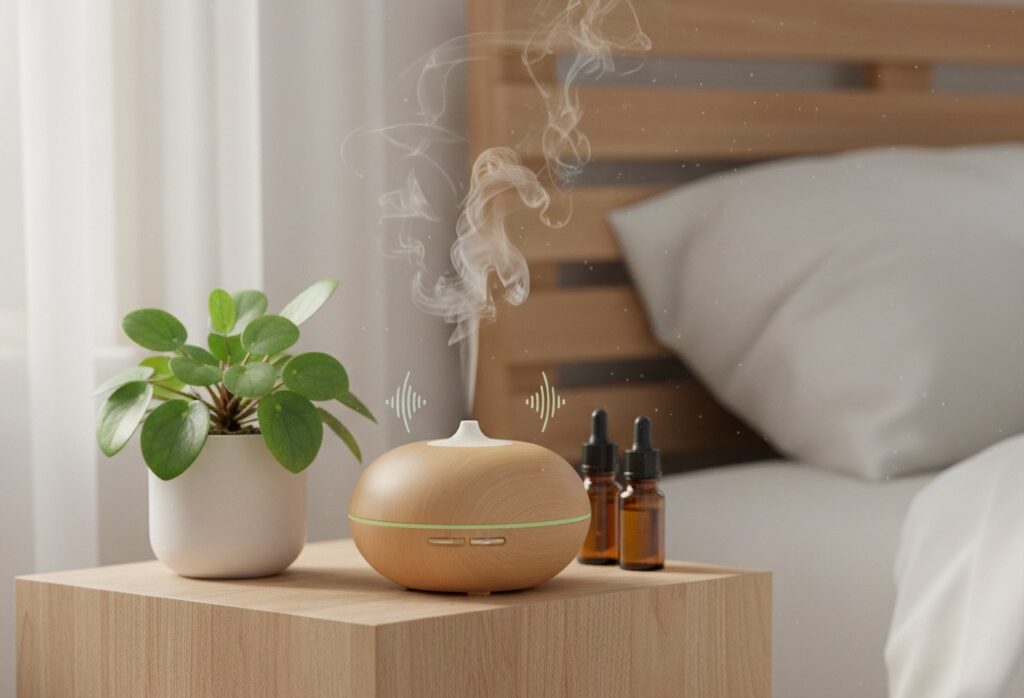 • Sound: Choose one or two consistent natural soundscapes (like soft rain or gentle waves). Keep the sound source on the opposite side of the bed from where you sleep so the direction feels organic, not artificial.