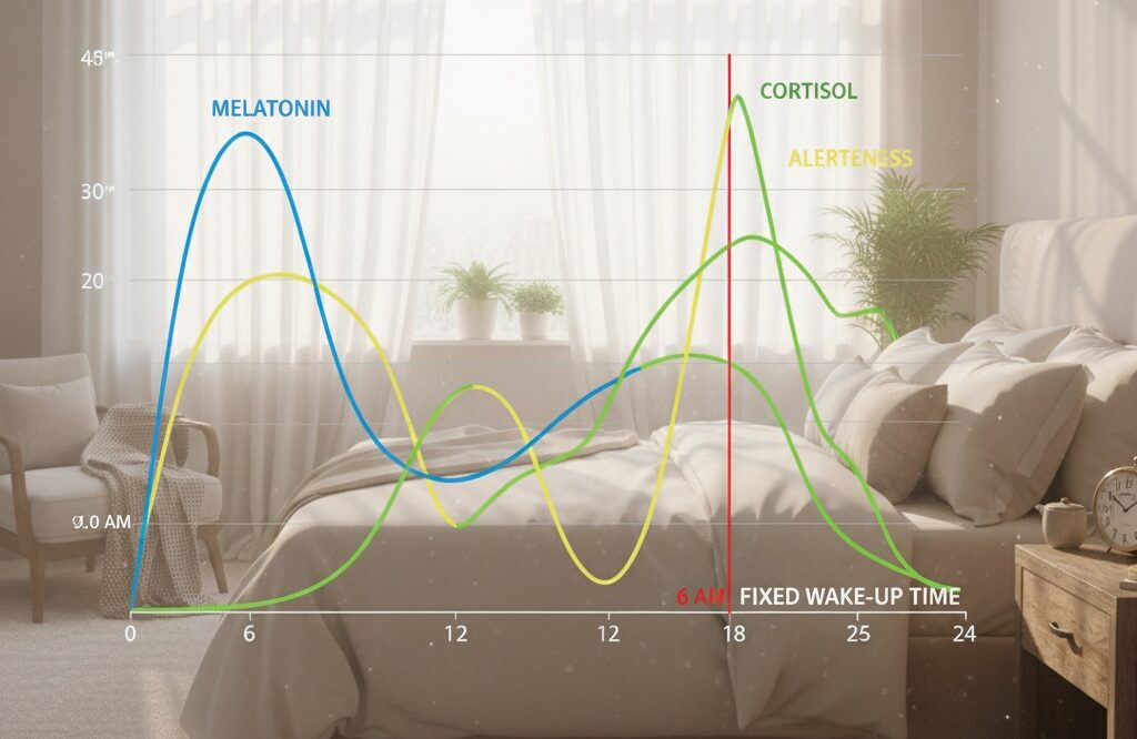 When you wake up consistently, your entire biological system — hormone secretion, digestion, mental alertness, body temperature — begins to sync around that anchor.